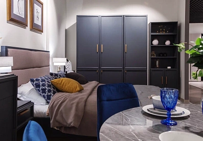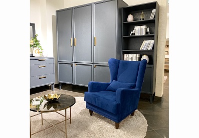 Роскошь серого кашемира в сочетании с фурнитурой под золото выглядит солидно и эффектно. Совмещенные вместе ручки образуют прямоугольник, дублирующий общую геометрию мебели. Фасад рамочной конструкции обрамлен двойными филенками. Опоры изделия скрыты элегантным декоративным цоколем, окрашенным в основной тон. Такая модель станет отличным вариантом для оформления спальни, гостиной, прихожей или детской в стиле ар-деко, классика, модерн.