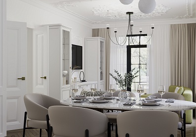 – описание: стиль модерн, контемпорари, классический, неоклассика, цвет бело-серый.